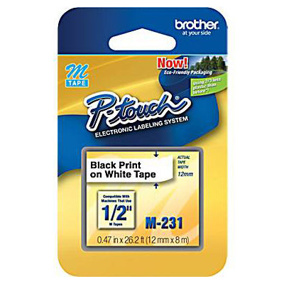 Brother Label Tape, M231, White 0.50" Width x 26.20 ft Length