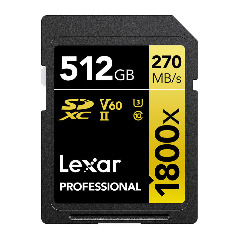 Lexar Professional SDXC Memory Card, 1800x 512GB, Class 10, UHS-II, U3, GOLD Series